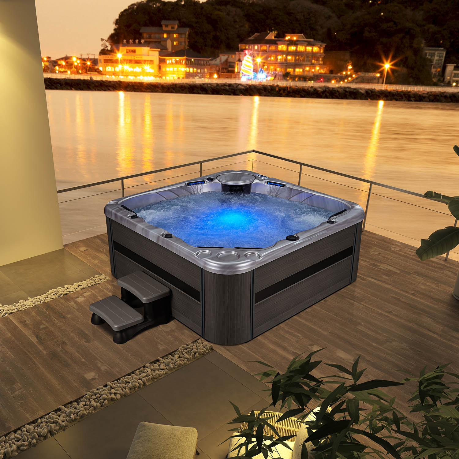 С размерами 2350x2350x920 мм, этот спа-бассейн с комфортом разместит до 6 человек. Здесь вы сможете проводить время с семьей и друзьями, наслаждаясь общением и расслабляющими водными процедурами.